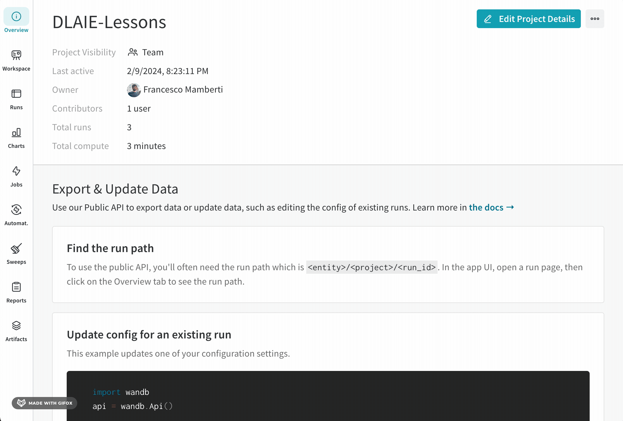 - 右上のコーナーで Edit Project Details ボタンをクリックします。