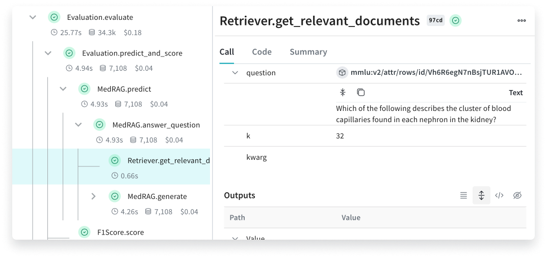 Weave は、LLM アプリケーションを追跡および評価するための軽量ツールキットです。W&B Weave を使って、LLM の実行フローを視覚化および検査し、LLM の入力と出力を分析し、中間結果を表示し、プロンプトと LLM チェーン設定を安全に保存および管理できます。